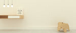 Material: Celulose (painel de parede tradicional). Sua base tem tonalidade off white e leve trama.