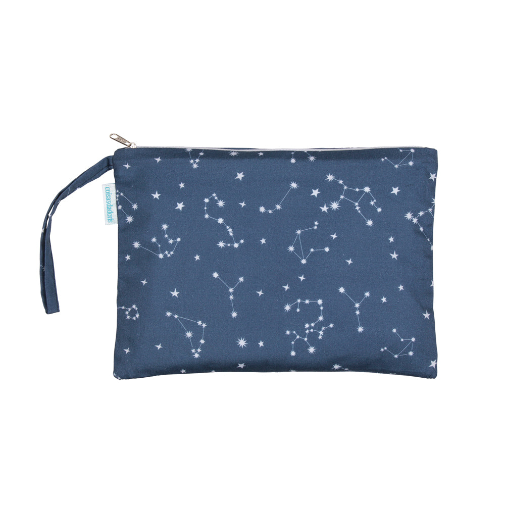 Confeccionada com nossas estampas exclusivas, a Necessaire Constelação Azul é perfeita para organizar seus itens de higiene pessoal, maquiagem ou pequenos objetos. Leve e compacta, cabe facilmente em qualquer bolsa ou mala. Ideal para viagens, academia ou uso diário. Leve, compacta e impermeável, essa necessaire te acompanha em qualquer lugar.