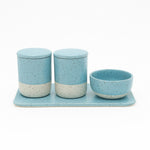 O Kit é composto por 3 peças, sendo um bowl, um pote maior e um pote menor.